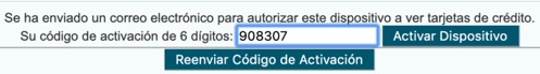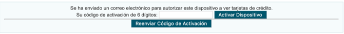 Una vez activado el dispositivo, tendrá que introducir el código captcha facilitado para ver los datos de tarjeta.